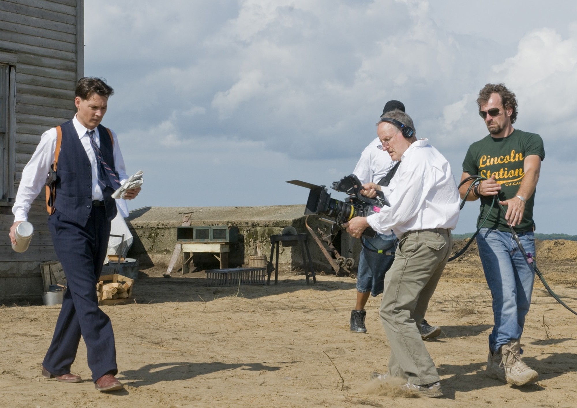 Behind the scenes photo from the production of Michael Mann's film Public Enemies